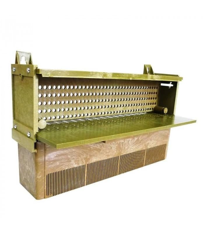 Пыльцесборник состоит из: рамки с подъемной решеткой и сетчатым дном и лотка для сбора пыльцы.